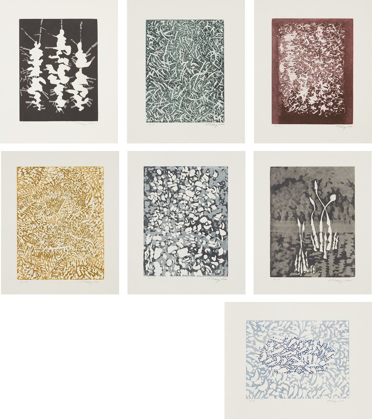 The complete set of seven aquatints in colors, on wove paper, with full margins, all contained in the original beige cloth-covered portfolio, with justification.