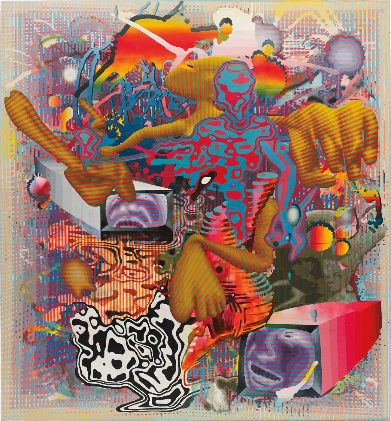 acrylic, spray paint on canvas