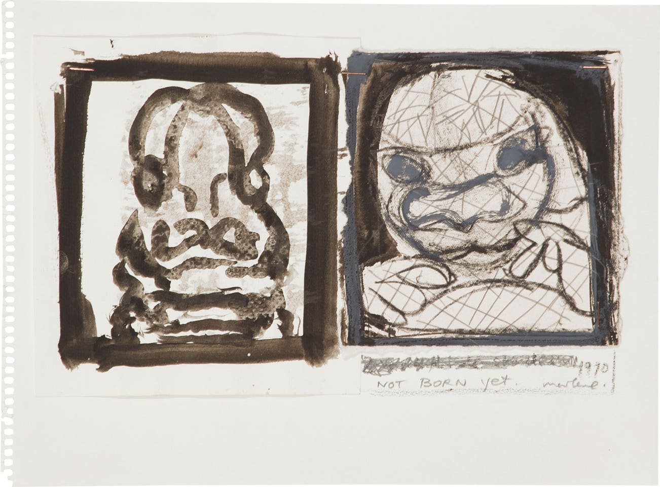 signed, titled and dated "NOT BORN yet. 1990 marlene." lower right; further signed "M Dumas" on the reverse
