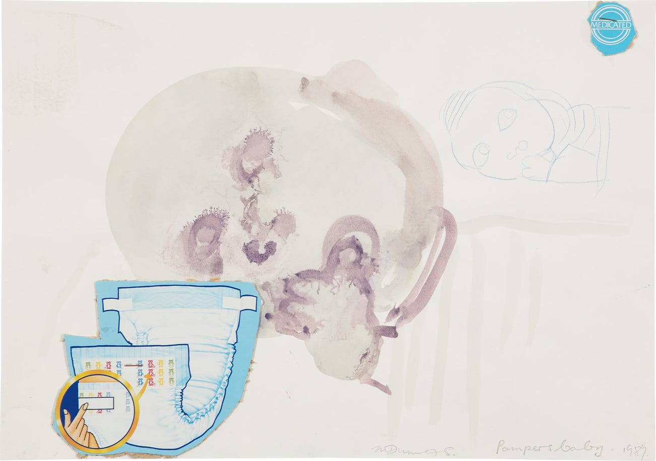 signed, titled and dated "M Dumas. Pampers Baby. 1989." lower right