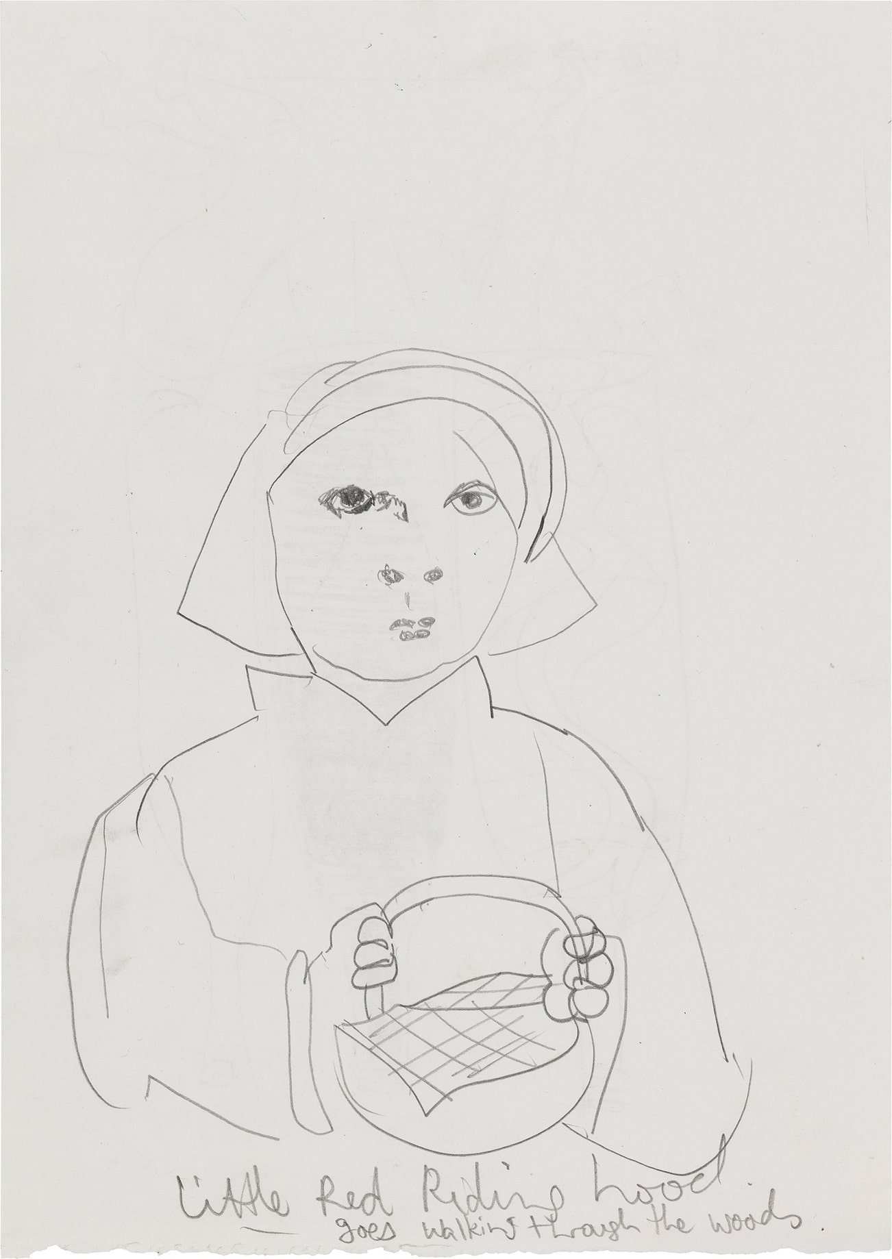 inscribed "Little Red Riding hood goes walking through the woods" lower edge