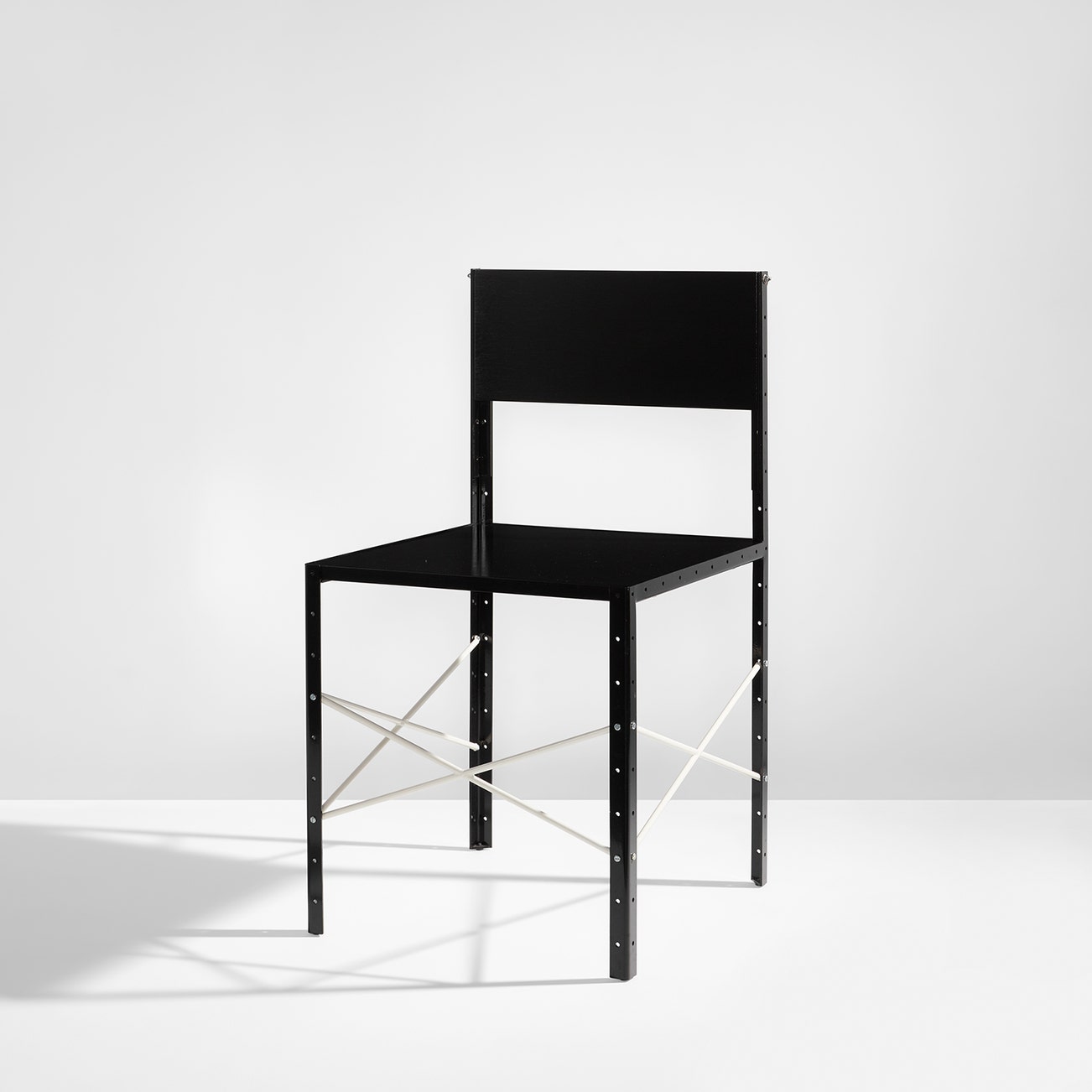 Manufactured by Projects and SCP Ltd., London. Number 1 from the edition of 10 plus 1 edition proof and 1 artist's proof. Underside with metal plaque printed Please Touch/Manufactured by Projects / SCP Ltd/Martin Boyce/Chair (noir)/Edition no: 1 / 10.