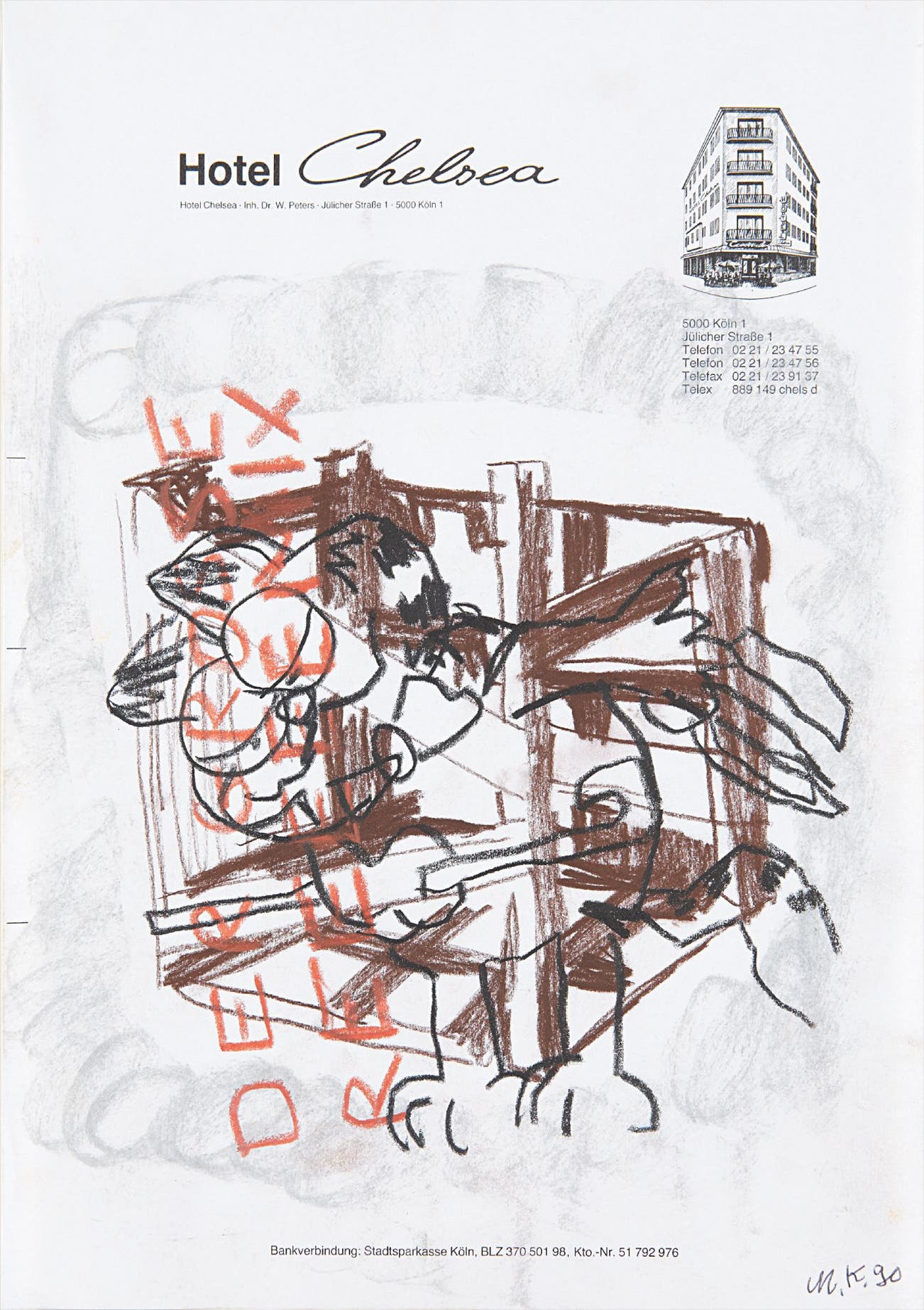 signed with the artist’s initials and dated “M.K. 90” lower right
