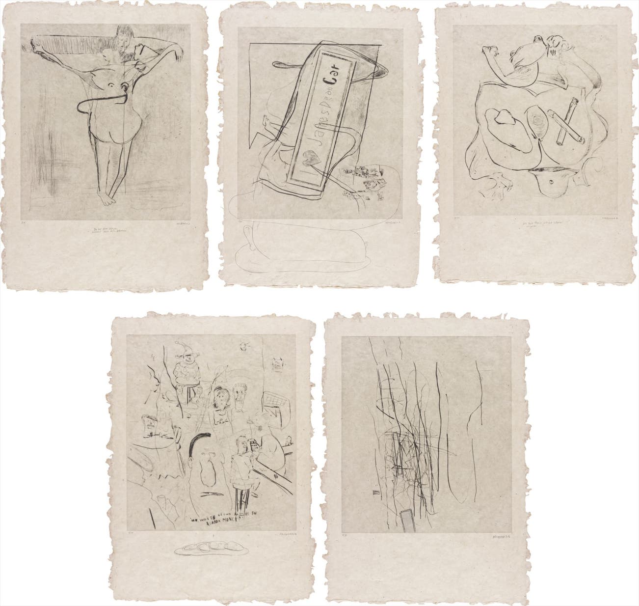 The complete portfolio of five drypoint etchings, on handmade Nepali paper, with full margins, with original colophon,