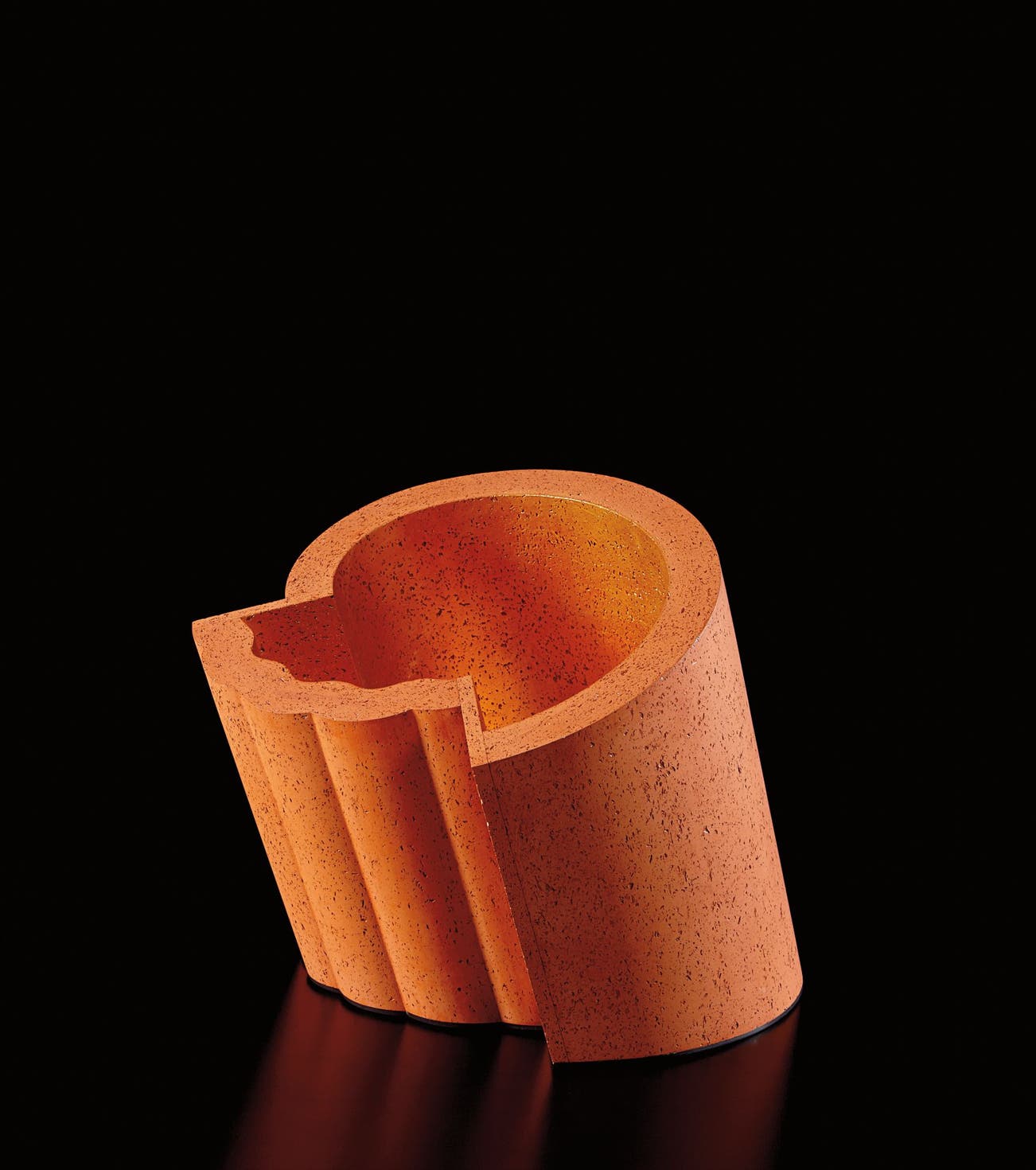 Red earthenware, slate, gold leaf.