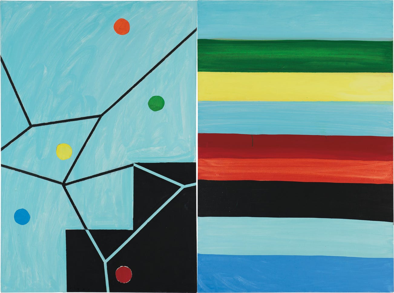 signed and dated “M Heilmann 2001” on the reverse of the left canvas; further signed, inscribed and dated “M Heilmann 2001 Blue Sky Serape” on the reverse of the right canvas