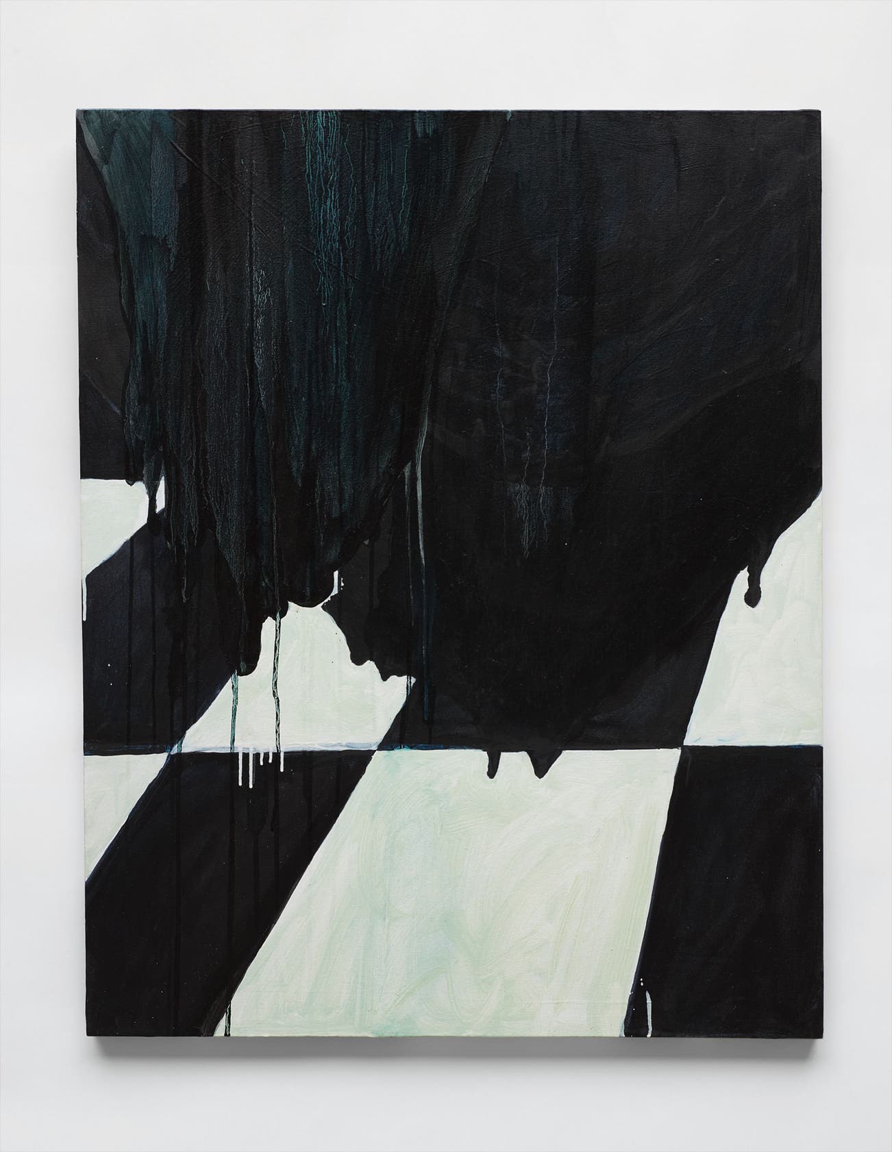 The majority of Heilmann’s paintings are accompanied by titles that serve as narrative markers, which inform the artwork. These relate to all aspects of her life, whether being personal feelings, everyday occurrences or references to popular culture, each creating an autobiographical marker for the artist. The dark paint dripping downthe geometric shapes on the canvas evokes subtle yet powerful associations with the movement of rain cascading down a window, an image that is further enforced by the title It’s Raining Today.