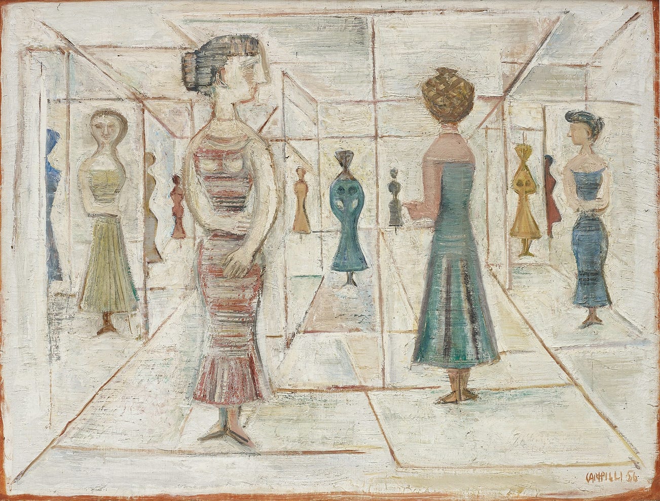 signed and dated 'CAMPIGLI 56' lower right; further signed, indistinctly titled and dated 'CAMPIGLI 1956 LABYRINTHE' on the reverse