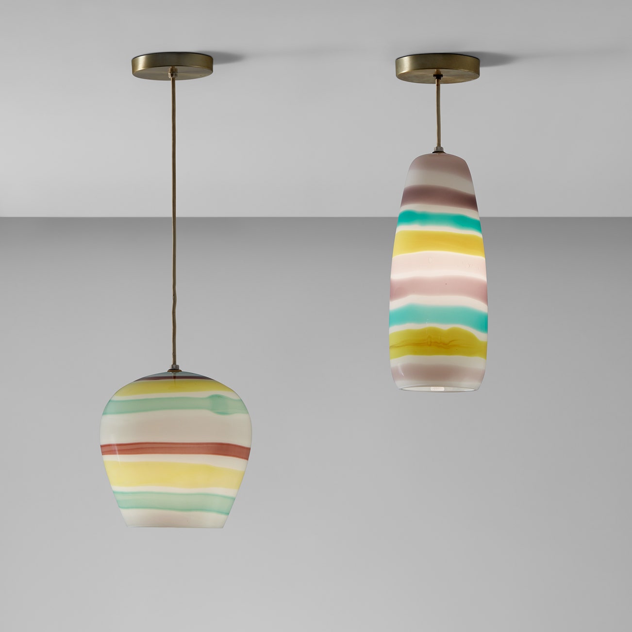 Produced by Venini, Murano, Italy. Top of the smaller shade with paper label inscribed in pencil 4035.