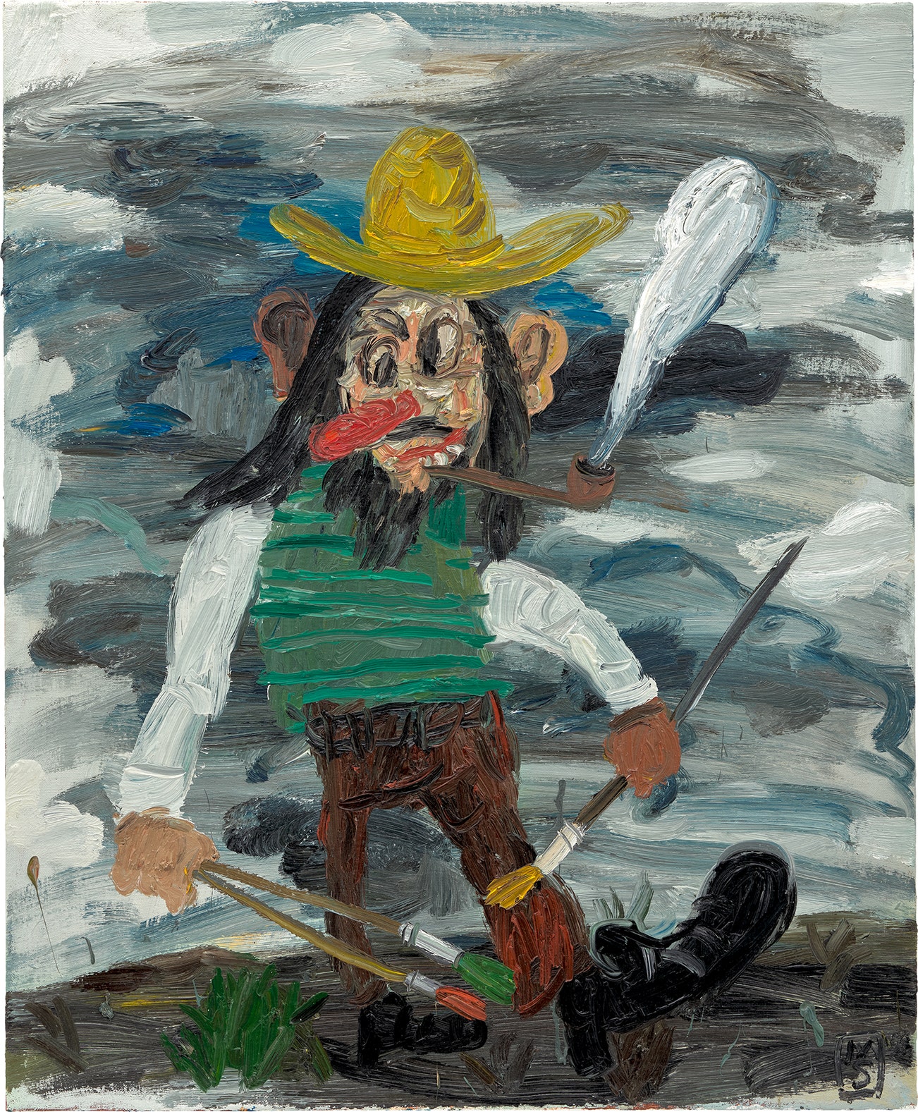signed with the artist's initials 'MS' lower right; further signed, titled, inscribed and dated 'Matías Sánchez Sevilla. 2019 "PINTOR EN LA CIMA DE LA MONTAÑA"' on the reverse