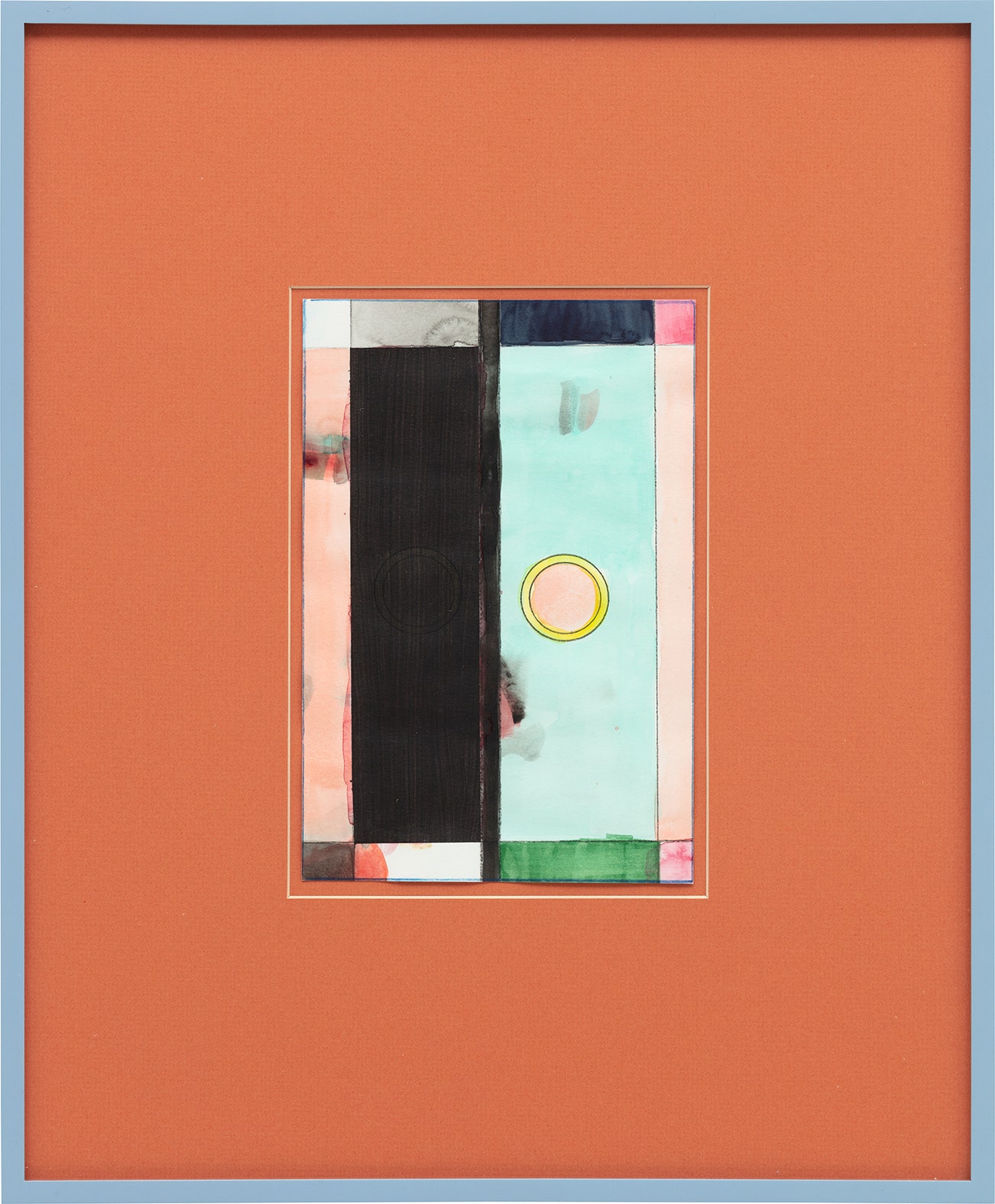 watercolor, acrylic and colored pencil on paper and colored mat board, in artist's frame