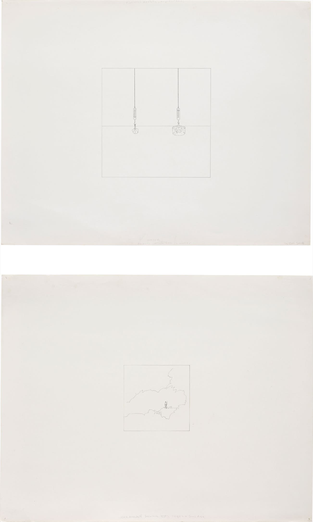 (i) Signed and dated 'WATER Objects weigh less in water by Ceri Smith' along the bottom edge and annotated 'Fictional Reality, experiments' upper centre.