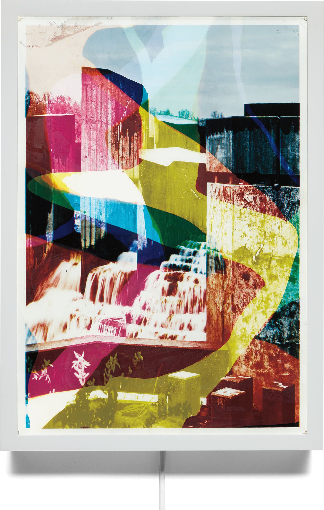 Unique multi-layered Duraclear prints processed with Flint River, Michigan water, in LED lightbox frame.
