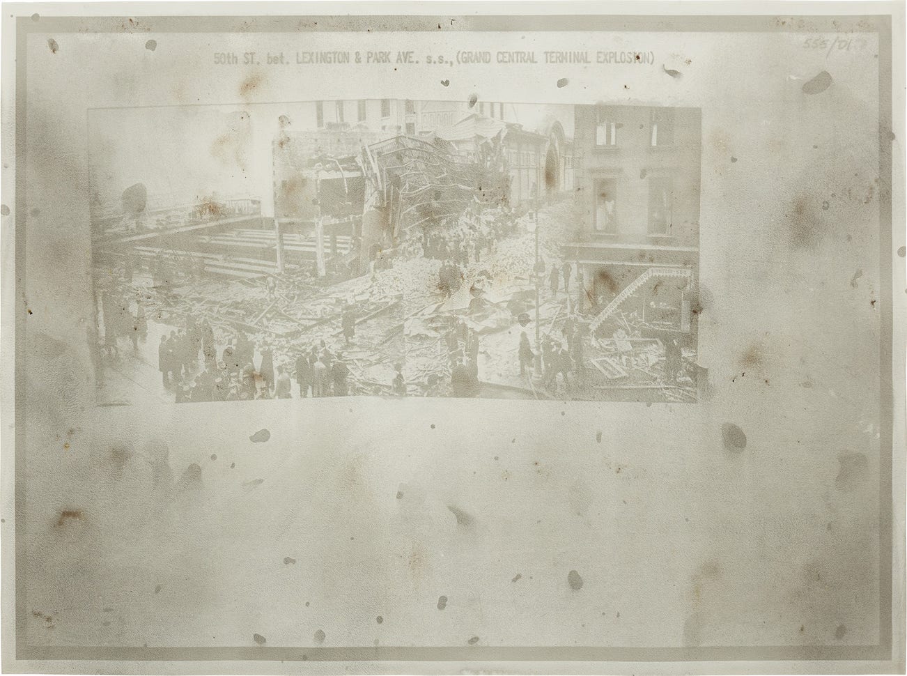 signed, titled, inscribed and dated "713447Ful Gum Bichromate print with Dust swept from Lexington Ave / E. 50th St. Metro Station upper level 2014 Matthew Brandt" on the reverse