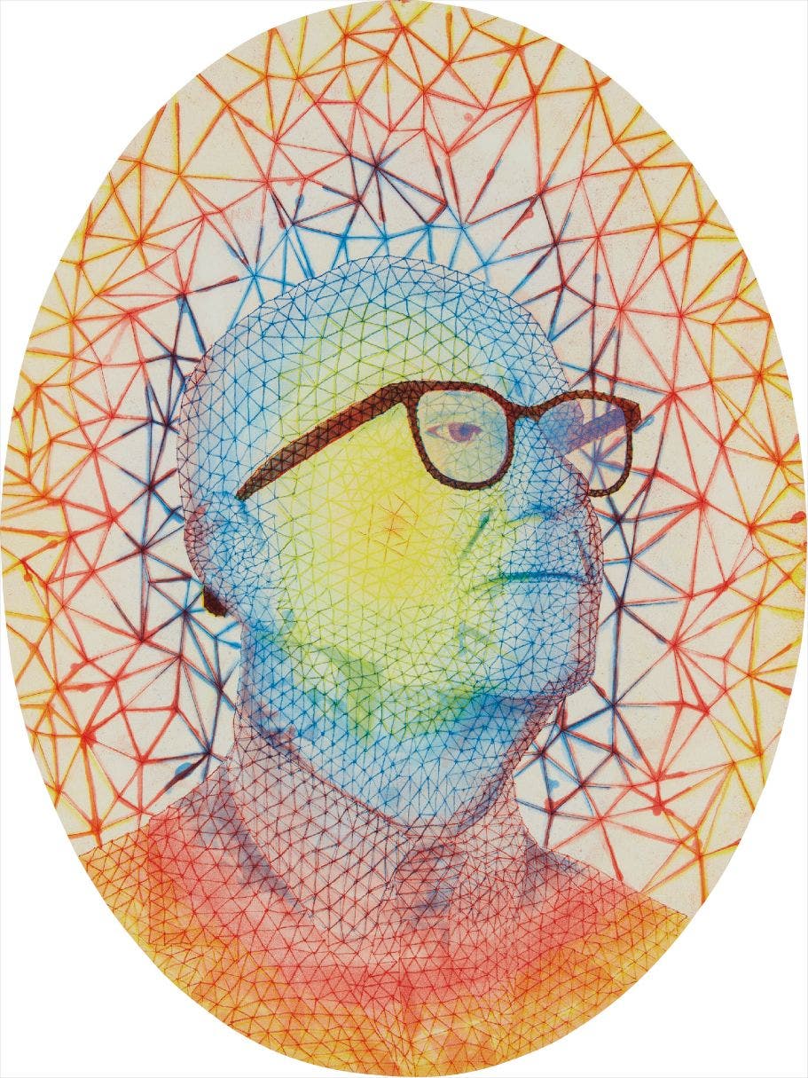 Etching and screenprint in colors, on shaped Hahnemühle Copperplate paper, the full sheet.