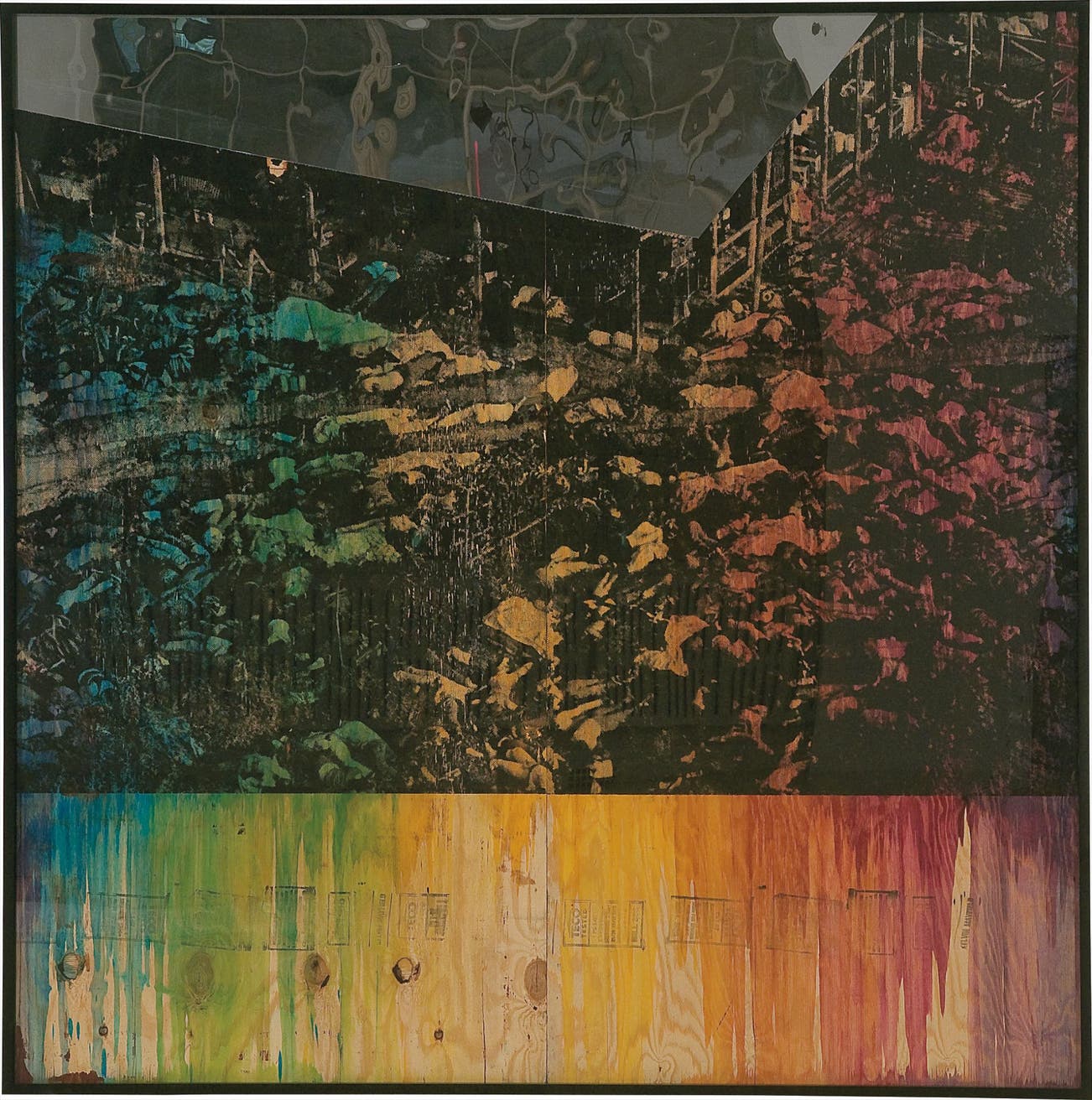 plywood, screenprinted enamel, aniline dye, poly finish, Plexiglas mirror