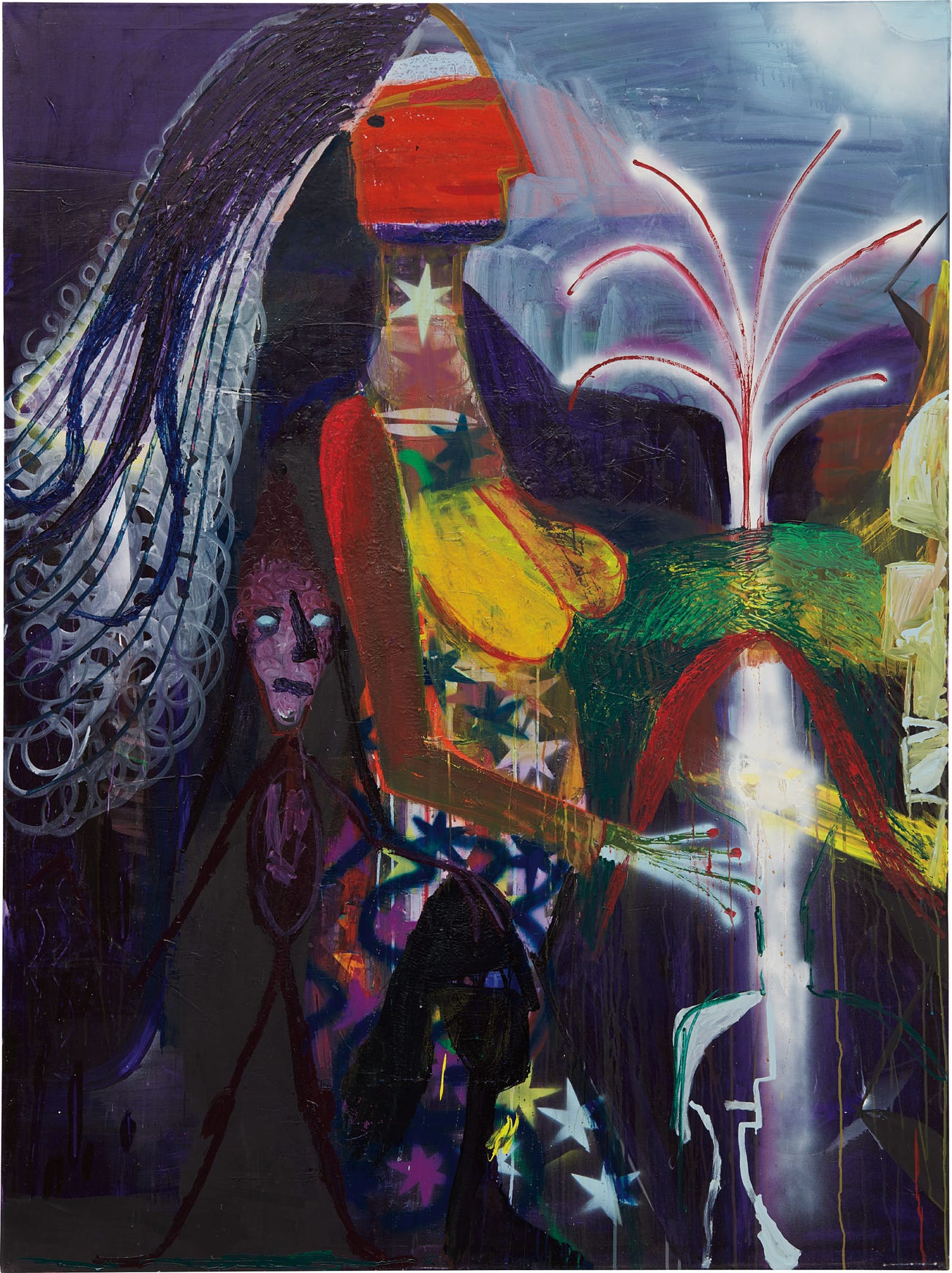 signed, titled and dated "untitled (big magic woman) M. Dornfeld 2011" on the reverse; further stamped with the artist's name "M. Dornfeld" on the reverse