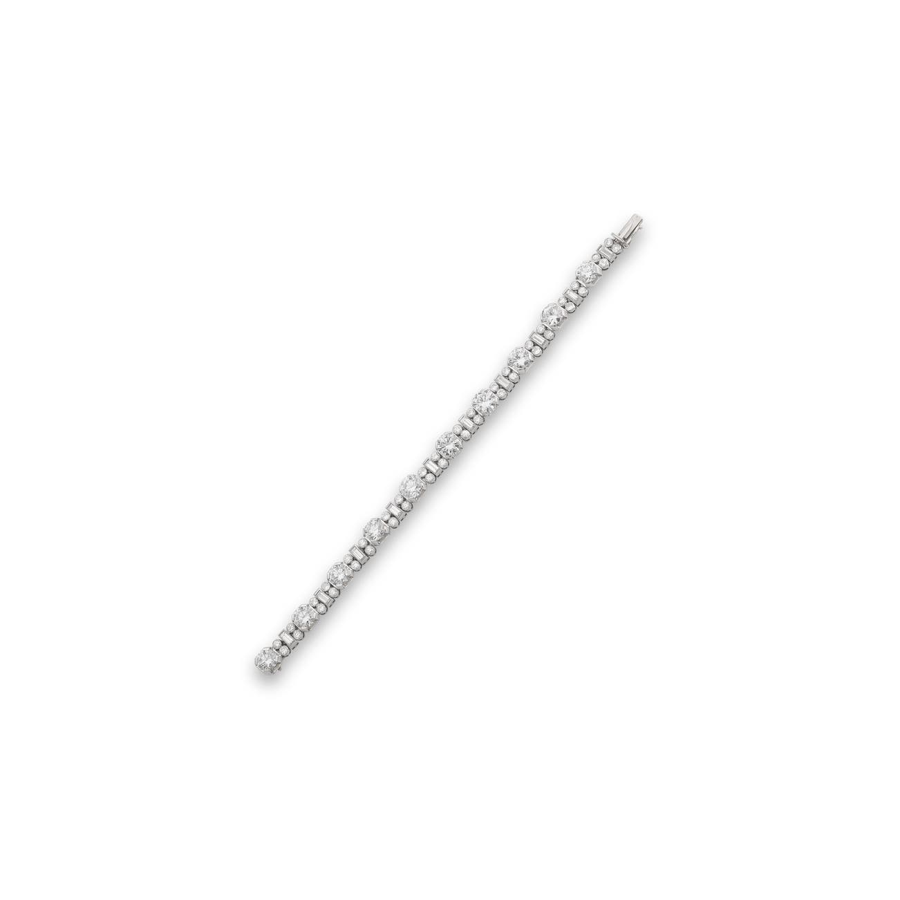 Set with circular-cut and baguette diamonds, length approximately 165mm, signed Mauboussin, numbered, French assay marks for gold and platinum.