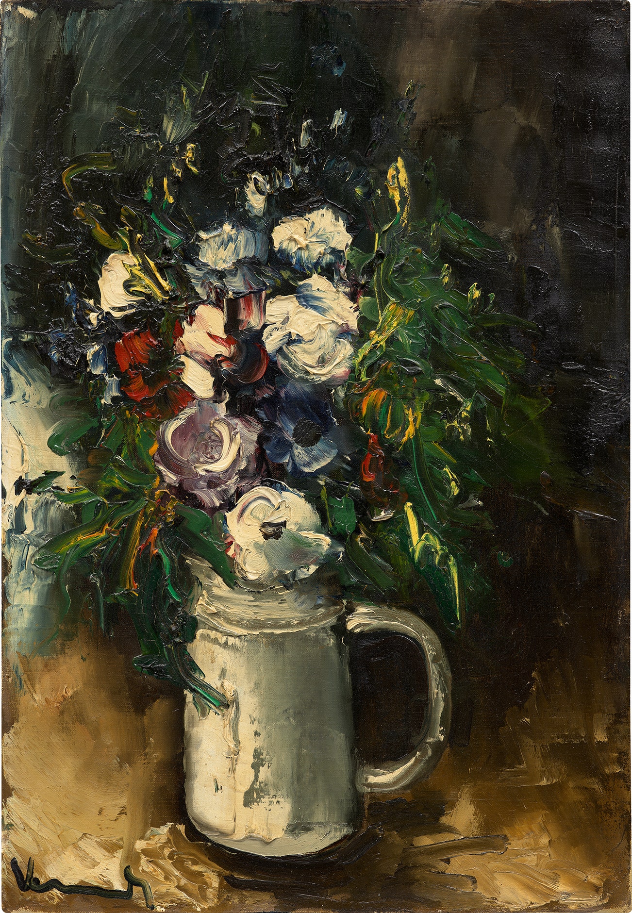 Fleurs dans un pichet blanc