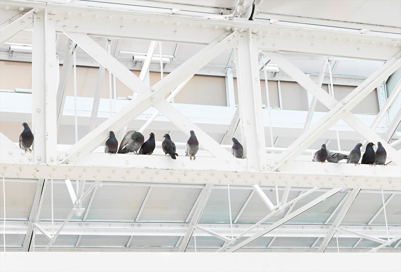 taxidermied pigeons (in 12 parts, life-size)