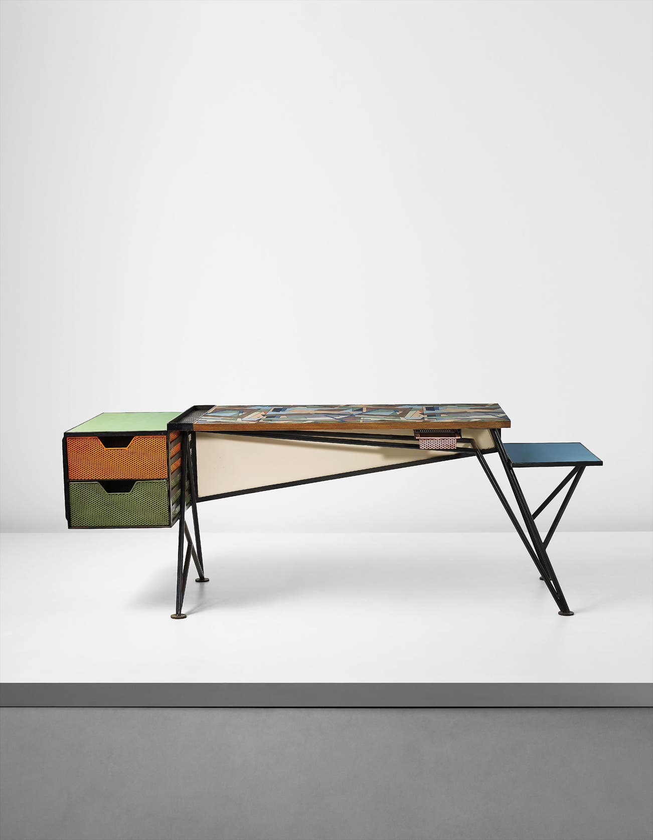 Manufactured by Cream Fassio, Milan, Italy. Tabletop printed twice with M. Reggiani, steel frame with manufacturer's metal label CREAM FASSIO/ALLESTIMENTI/ARREDAMENTI/MILANO and impressed with BY MAURO REGGIANI on the reverse.