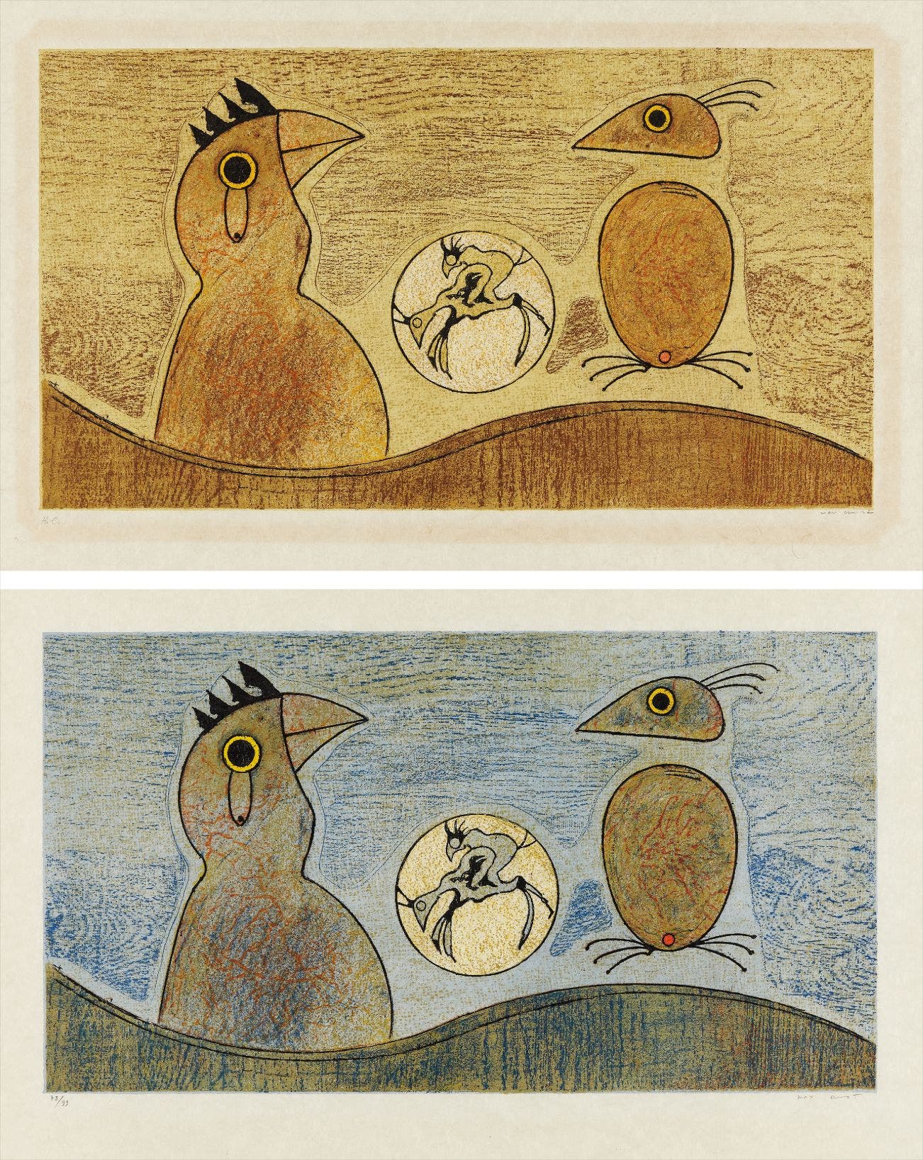 Two lithographs in colors, on wove paper, with full margins,