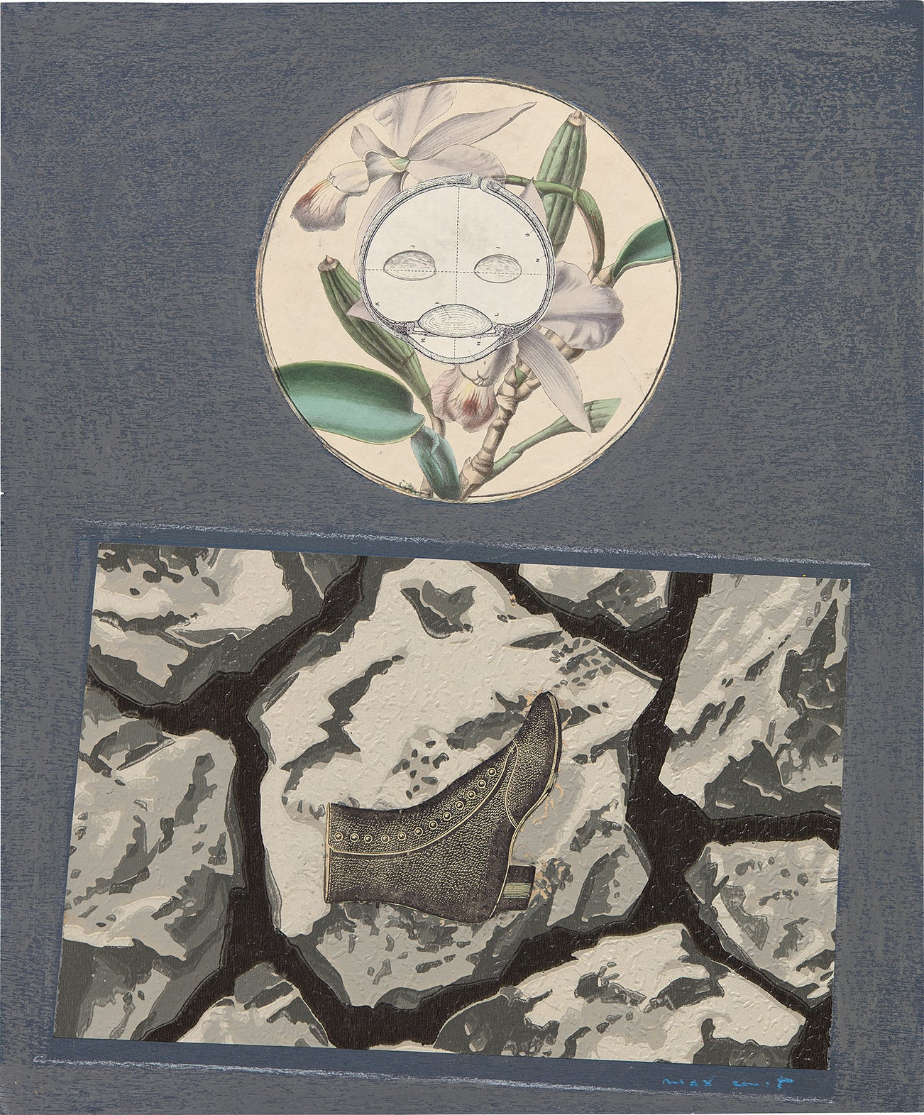 collage, oil crayon and graphite on wood