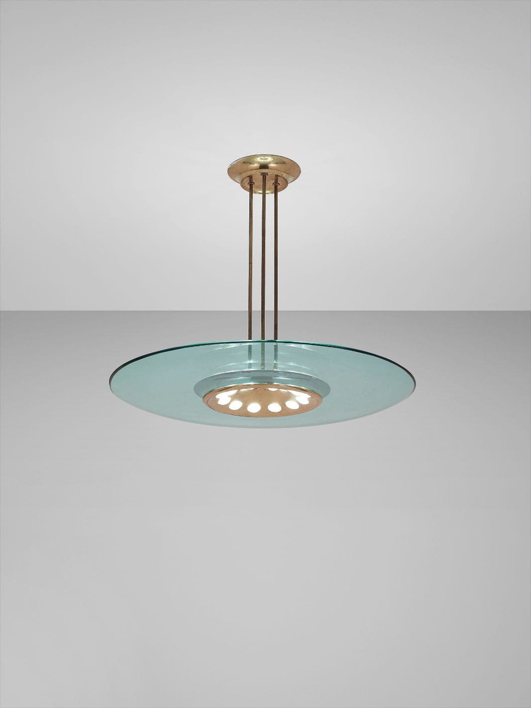Tubular brass, brass, painted metal, coloured glass, glass.