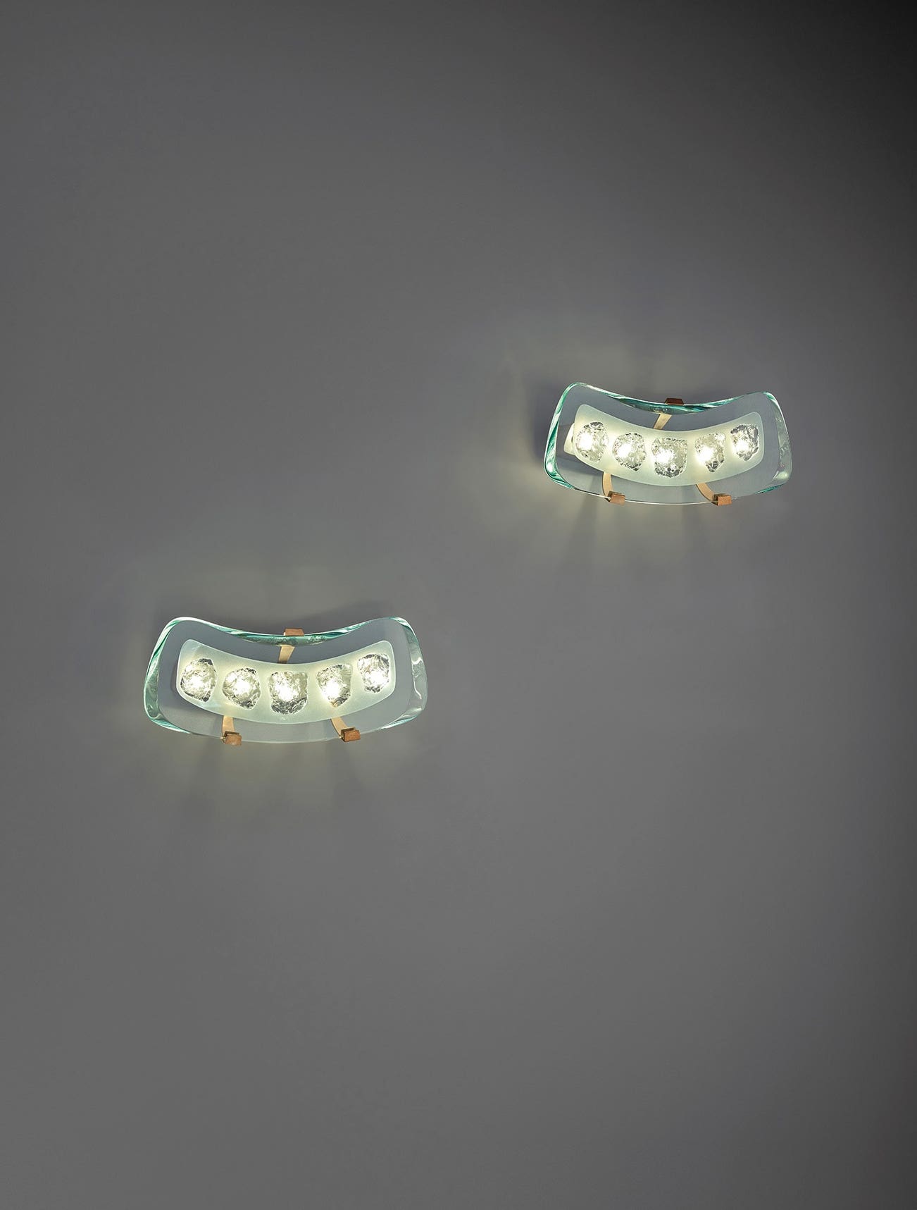 Manufactured by Fontana Arte, Italy and glass chiseled by Dubé.
