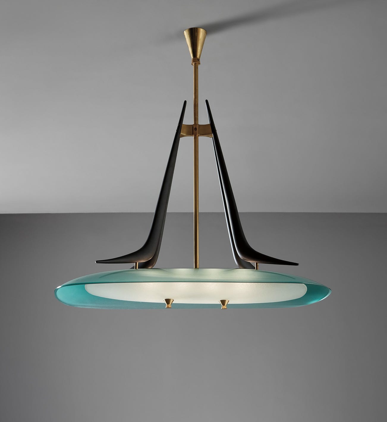 Brass, glass, painted aluminum.