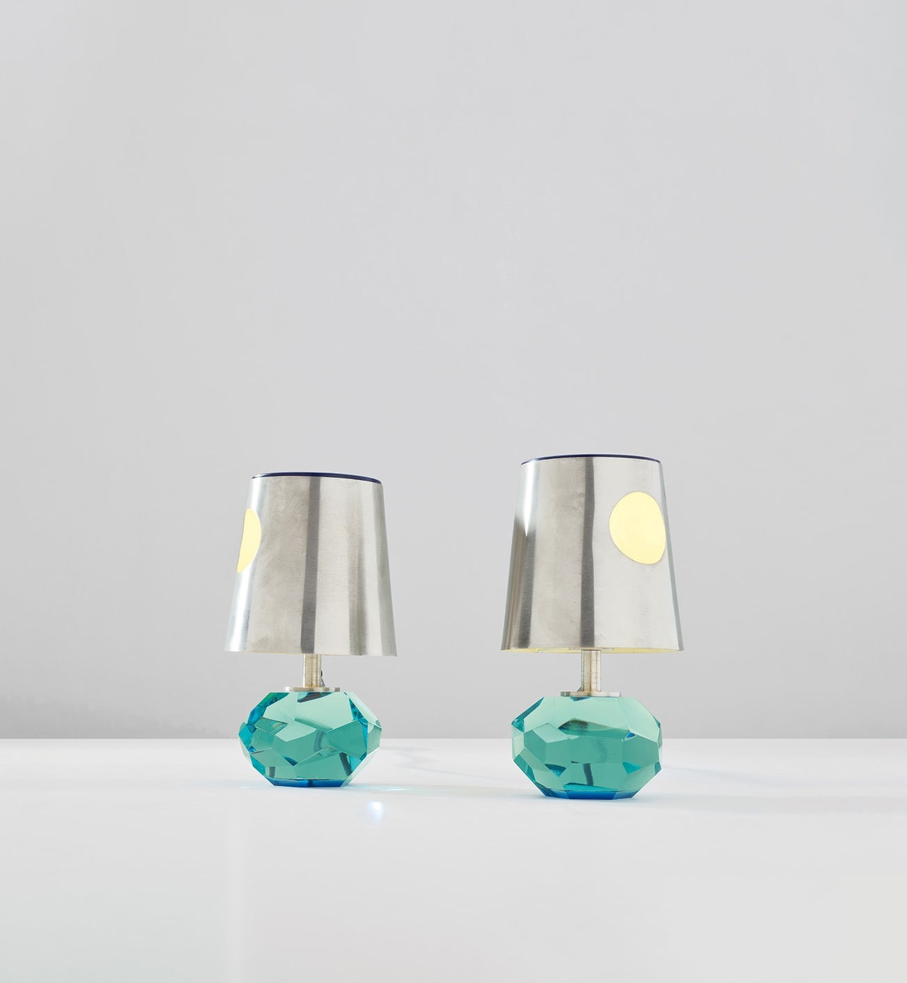 Coloured glass, nickel-plated brass.