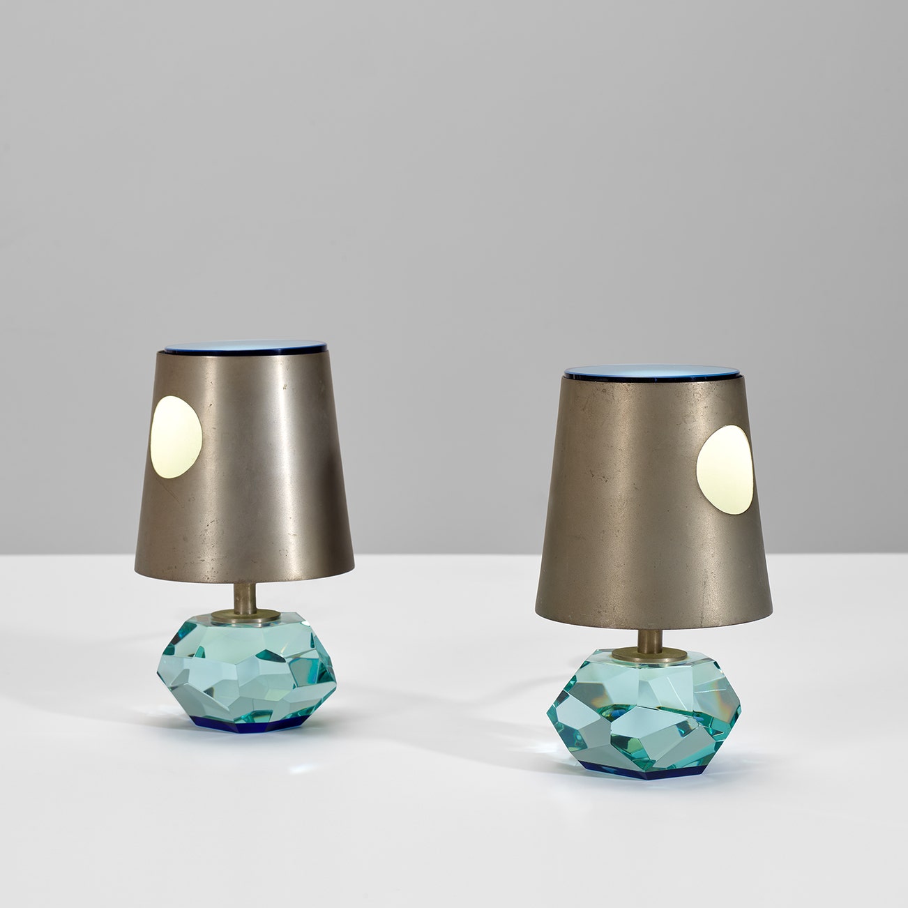 Nickel-plated brass, painted brass, glass, coloured glass.