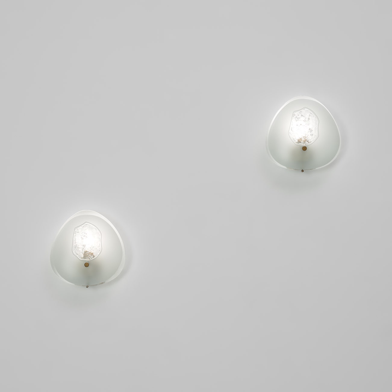 Partially chiselled and acid-etched glass, brass.