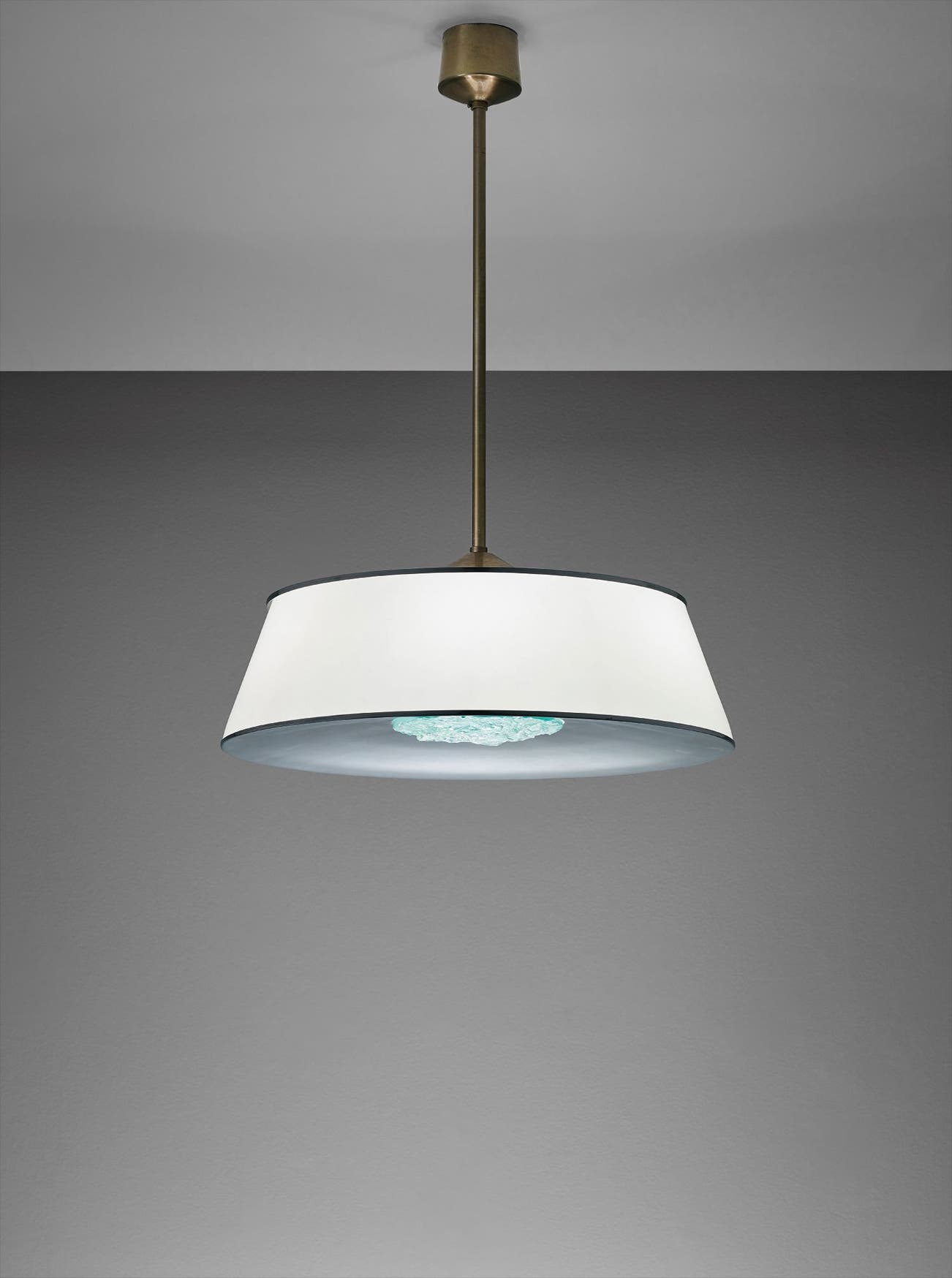 Polished aluminium, opaque glass, painted aluminium, tubular brass, brass.