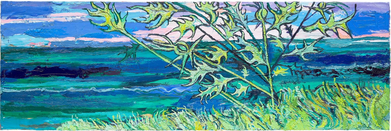 signed, titled, inscribed and dated 'ILE DE RE 2022 THISTLE ON THE SHORE MAXIM KANTOR Thistle on the Shore' on the reverse