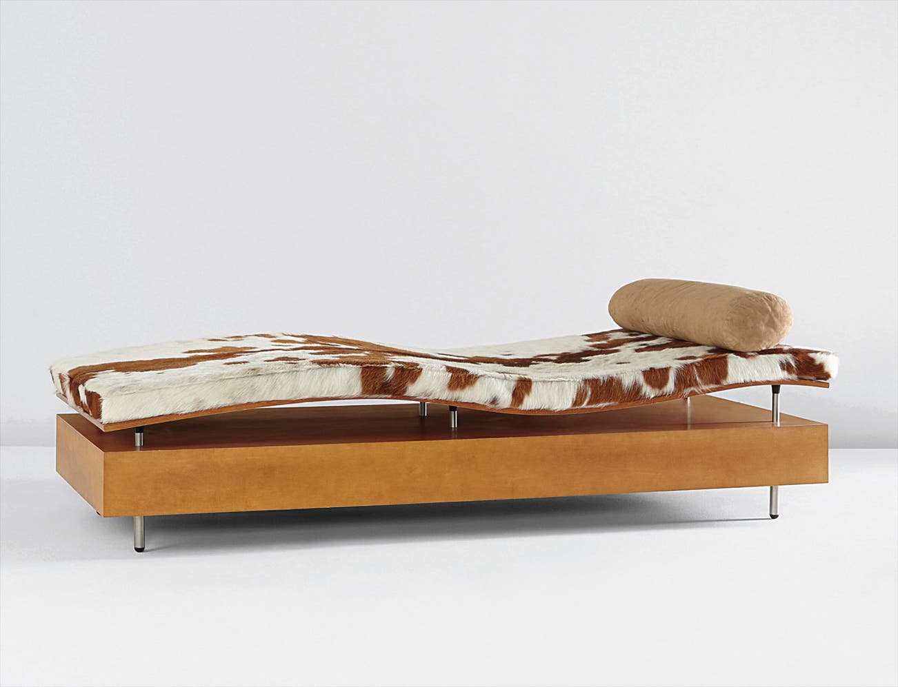 Maple, maple-laminated plywood, aluminum, cow hide, fabric.