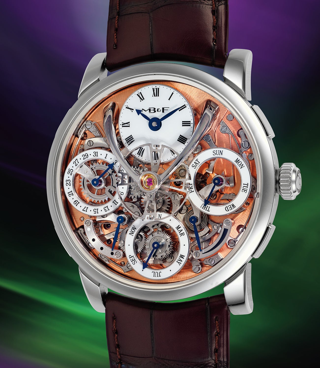 Introduced in 2015, the MB&F Legacy Machine Perpetual is a technical marvel that offers significant improvements to eliminate the fragile drawbacks and gear jams tied to the conventional perpetual calendar mechanism. A mechanism designed by Stephen McDonnell, a genius Irish independent watchmaker, combined with an open-worked design by Eric Giroud result in an extraordinary cutting-edge timepiece - inside and out.