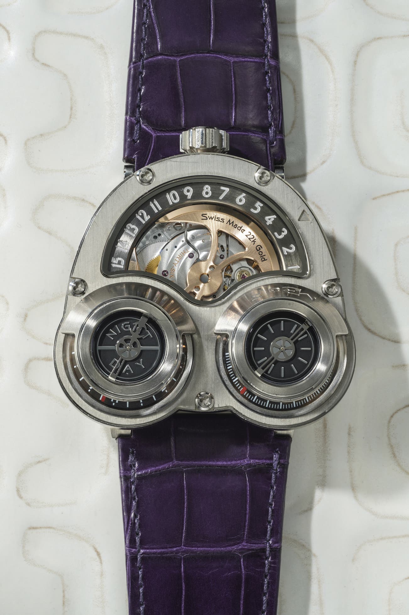A very captivating and fine white gold three-dimensional wristwatch with inverted movement, date ring and semi-spherical time display, certificate and presentation box, part of a 36 pieces limited edition