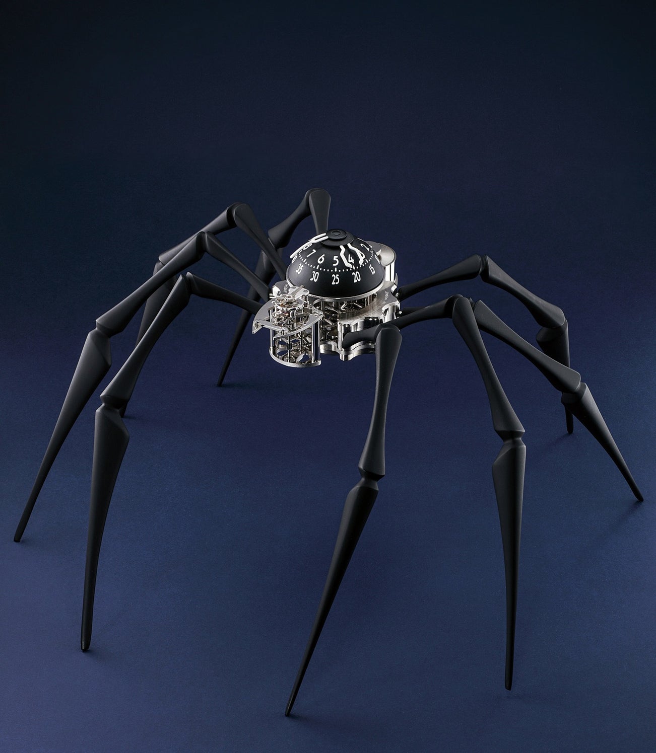 A creature like none of his previous creations, Arachnophobia is a fascinating high end table clock composed of 218 components. Created for aficionados of the unusual or watch enthusiasts, this timepiece will for sure attract the attention of anybody entering the room!