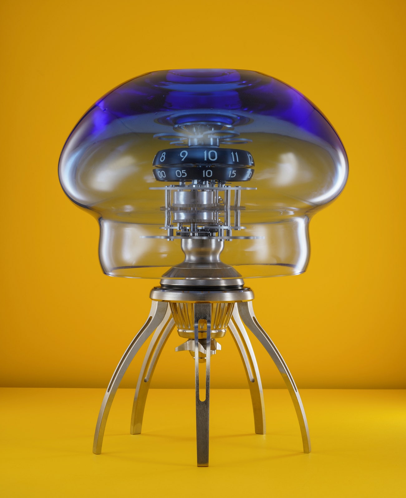 - As the name suggest, the MB&F Medusa Blue evokes the bell-shaped body of a jellyfish. With the possibility of being ceiling mounted or stood upon a desk, the clock is formed by a large transparent dome, made of hand-blown Murano glass.