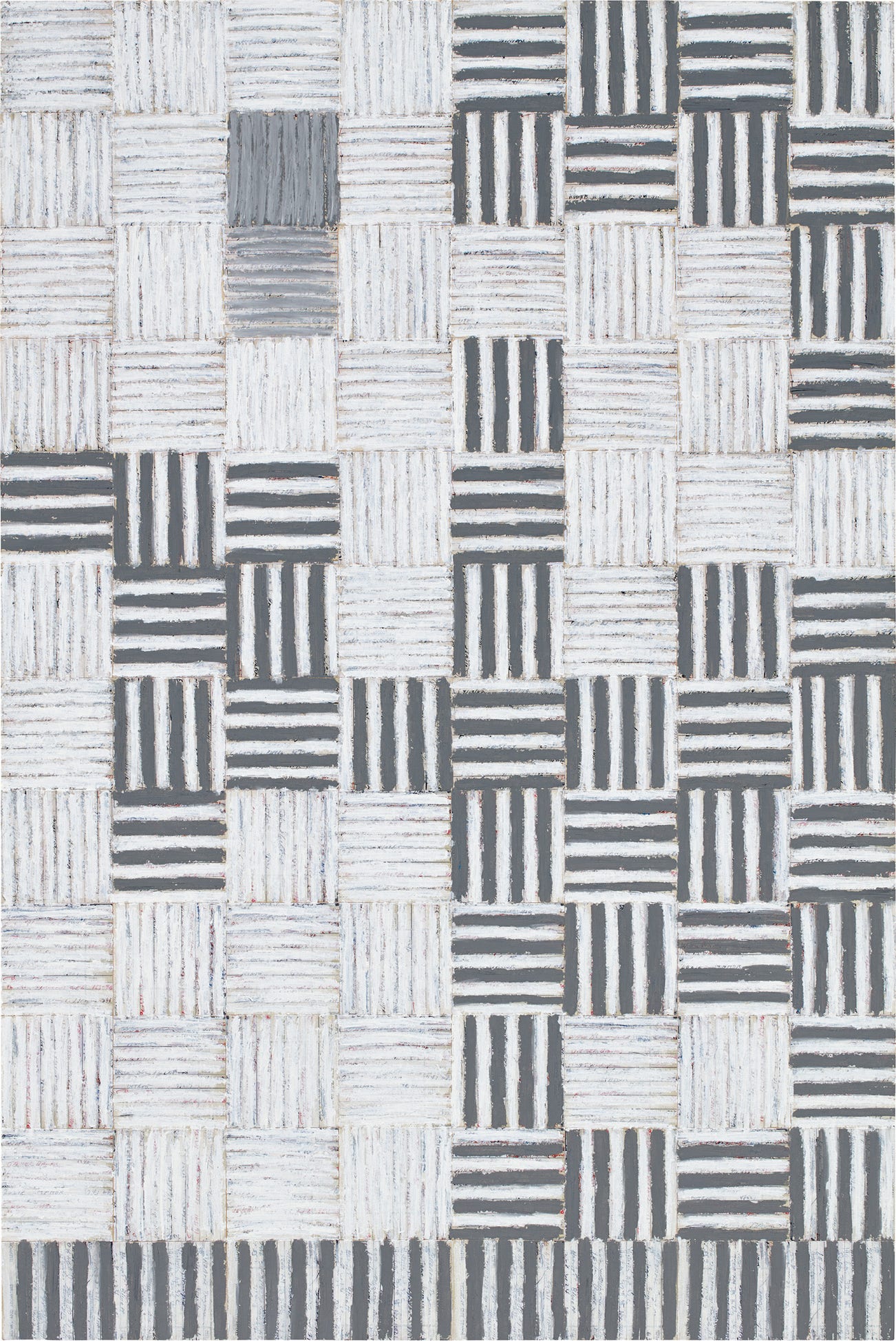 Binion is known for his nuanced abstract paintings that eschew brushes and paint. The process of grinding and then rubbing oilstick into wood and aluminum panels produces abstract subjects that are often mono- or duo-chromatic. He had to train himself to be ambidextrous to negotiate hand fatigue, and works an entire surface of a painting in one sitting, before returning to rework that surface the next day or week or month – with some works even taking years to complete. Binion, who often also incorporates photocopied biographical documents into his works, places personal memory in dialogue with the language of abstraction, specifically action painting, Abstract Expressionism and Minimalism, as well as stylistic tropes common to folk artists, such as quilt patterns.