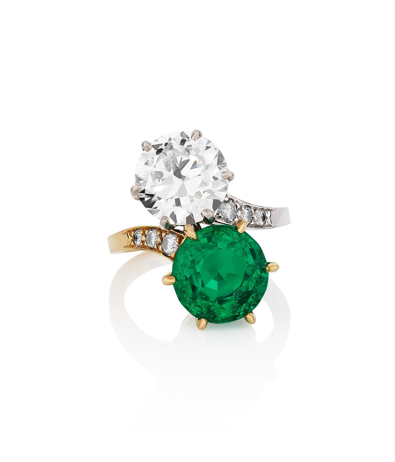 Accompanied by SSEF report no. 133189, stating that the emerald is of Colombian origin, with no indications of clarity modification, and GIA report no. 2225748929, stating that the diamond is E Colour, SI1 Clarity.