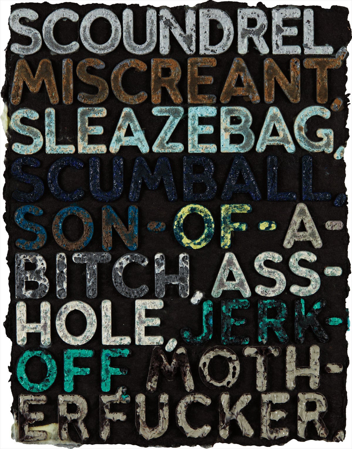 Monoprint with embossing and oil paint in colors, on heavy handmade paper, the full sheet.