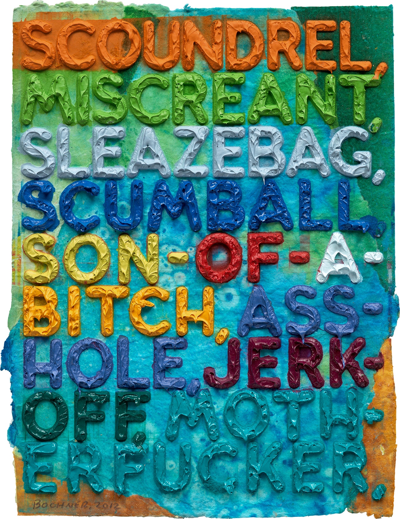 Monoprint in colors with collage, engraving and embossing, on hand-dyed Twinrocker handmade paper, the full sheet.