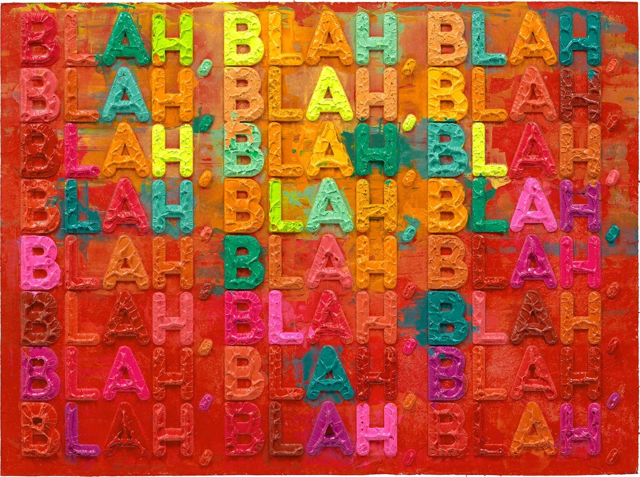 Monoprint with collage, engraving, embossing and oil paint in colors, on handmade and hand-dyed paper, the full sheet.