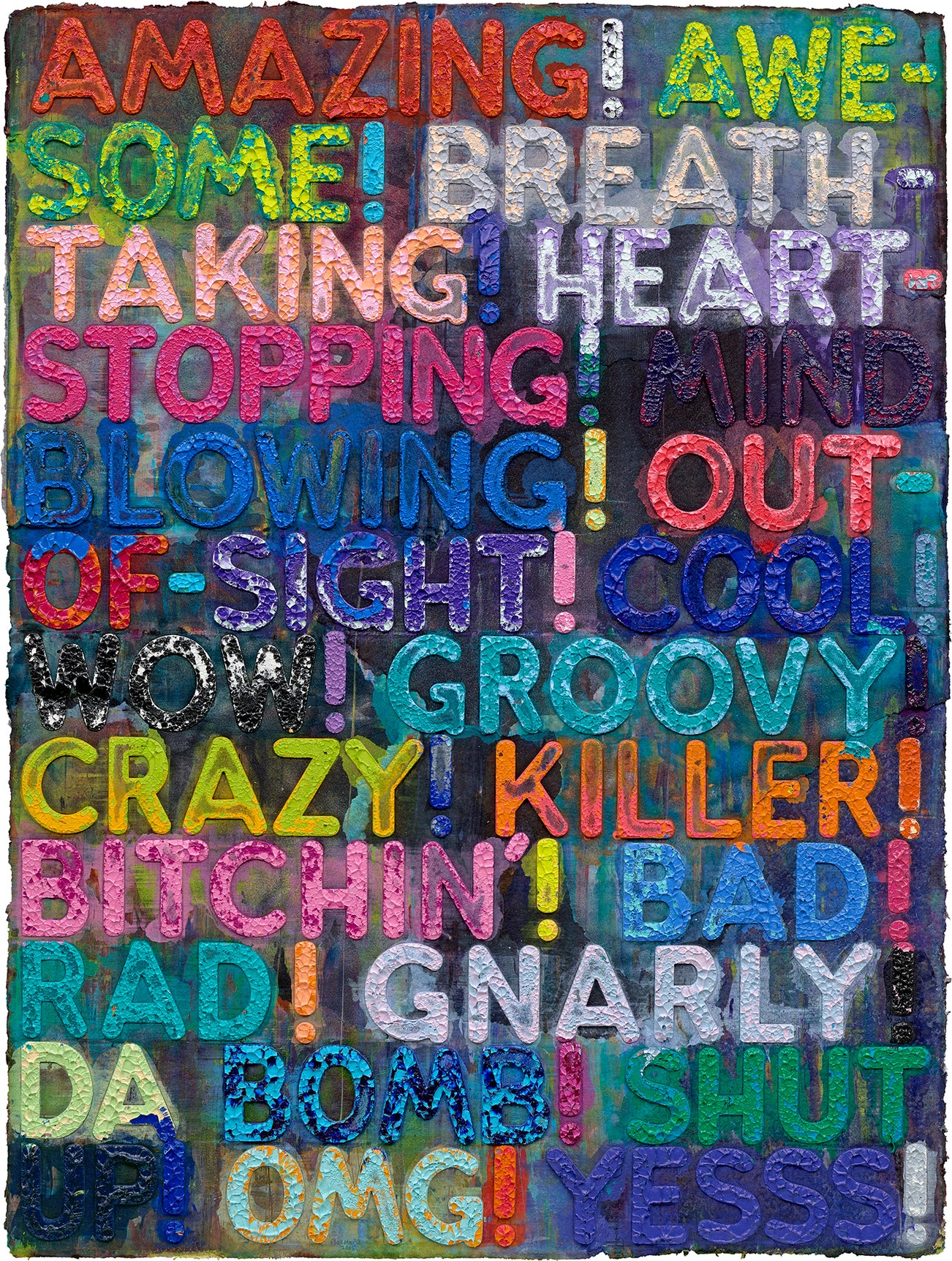Monoprint with collage, engraving, embossing and oil paint in colours, on handmade and hand-dyed Twinrocker paper, the full sheet.