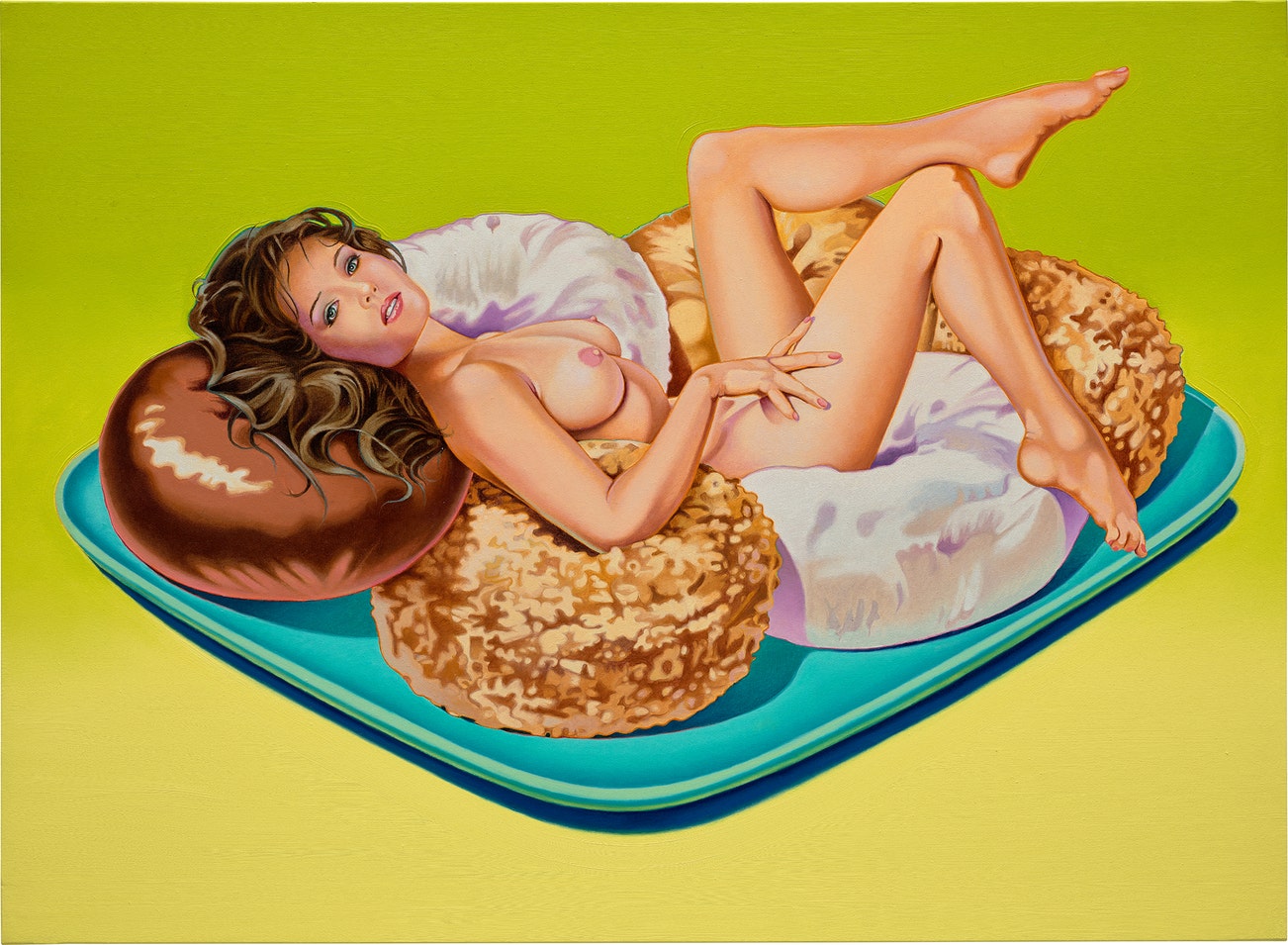 American | 1935Mel Ramos is an American Pop artist best known for his paintings of female nudes alongside brand logos. His depictions of women with everyday products celebrate aspects of popular culture represented in mass media and advertising. Like his contemporaries Roy Lichtenstein and Andy Warhol, Ramos was inspired by comic books and grew up drawing cartoons and characters from their pages. The artist's works, including paintings, prints and works on paper, feature in the permanent collections of the Whitney Museum of American Art in New York, the San Francisco Museum of Modern Art and the Museum of Contemporary Art in Los Angeles, among others.