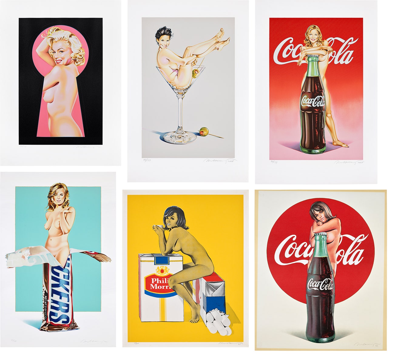 Peek-a-Boo Marilyn #1; Martini Miss #2; Lola Cola #4; Candy II - Snickers; Tobacco Rhoda; and Lola Cola #1