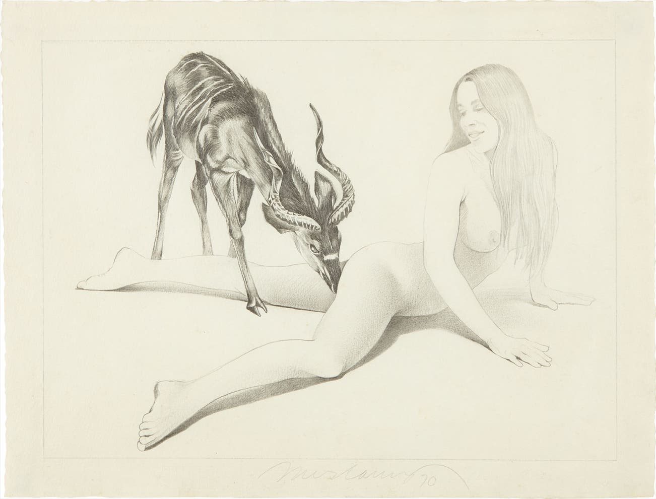 American | 1935Mel Ramos is an American Pop artist best known for his paintings of female nudes alongside brand logos. His depictions of women with everyday products celebrate aspects of popular culture represented in mass media and advertising. Like his contemporaries Roy Lichtenstein and Andy Warhol, Ramos was inspired by comic books and grew up drawing cartoons and characters from their pages. The artist's works, including paintings, prints and works on paper, feature in the permanent collections of the Whitney Museum of American Art in New York, the San Francisco Museum of Modern Art and the Museum of Contemporary Art in Los Angeles, among others.