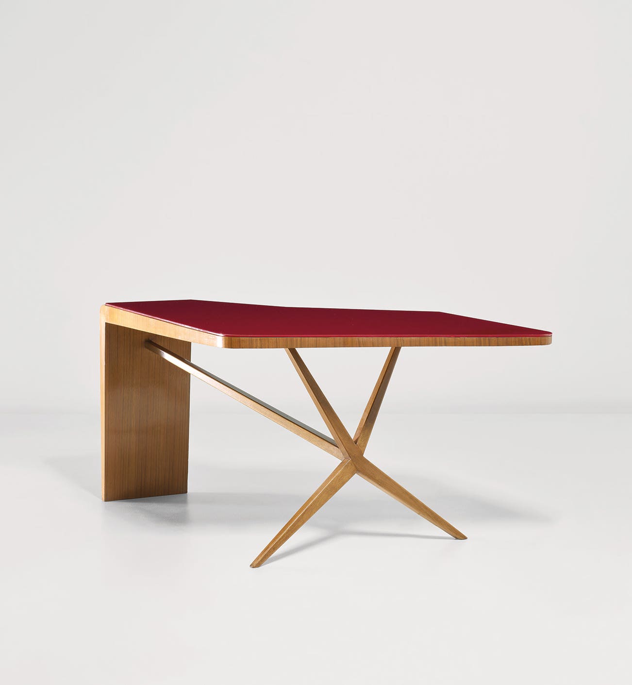 Reverse-painted glass, walnut-veneered wood, walnut.